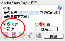 3. 允許存取您的網路攝影機和麥克風選項勾選「允許」及「記憶」(如圖)