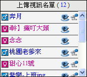 1. 若某網友在上傳視訊名單中沒有出現,但在聊天室線上名單上有視訊圖示,表示該網友目前不接受視訊邀請或是需經同意才能觀看視訊,此時在聊天室線上名單上的該網友點選「滑鼠左鍵」,若出現「檢視視訊」表示需經該網友同意才能觀看視訊(如圖)